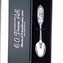 C.O.Persson besticketui Ett förvaringsetui i svart balacron med utvändig C.O.Persson logga i silver. Invändig mjuk polyfoam och ett band att fästa skeden. Bestickhållare i obehandlat trä. Den löstagbara bestickhållare lämpar sig till mindre skedar, som kaffesked, efterrättssked.