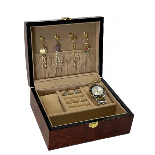 Smyckeskrin i ädelt trä sofistikerad förvaring
