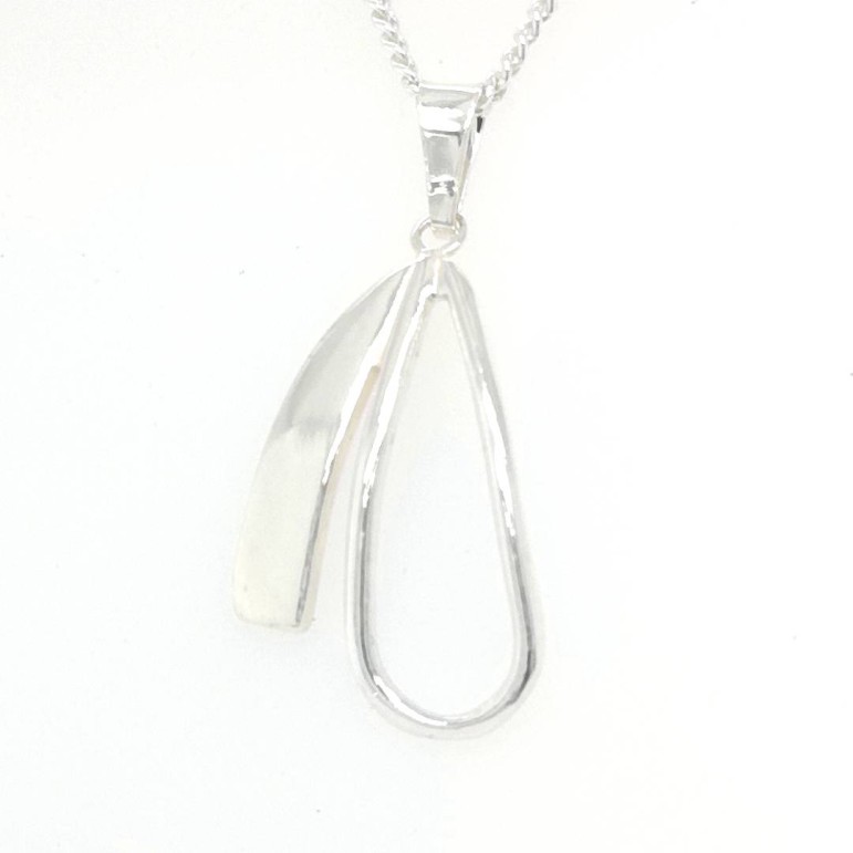 Formen droppformade håv 25mm som används vid sikfisket. Tillverkade i 925 silver, 45cm kedja.