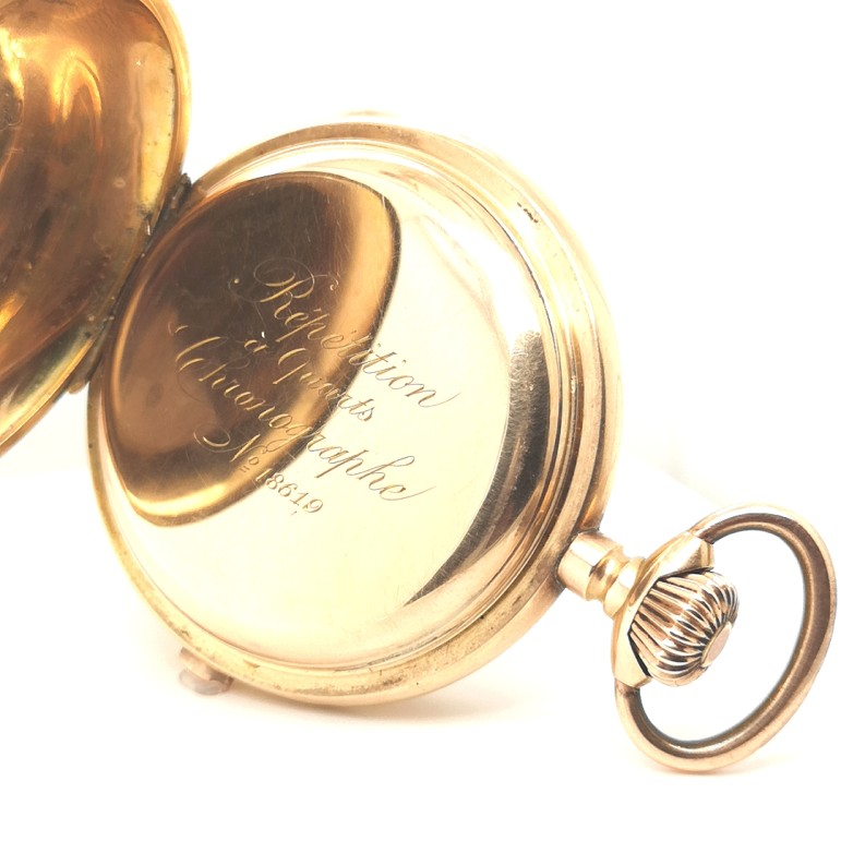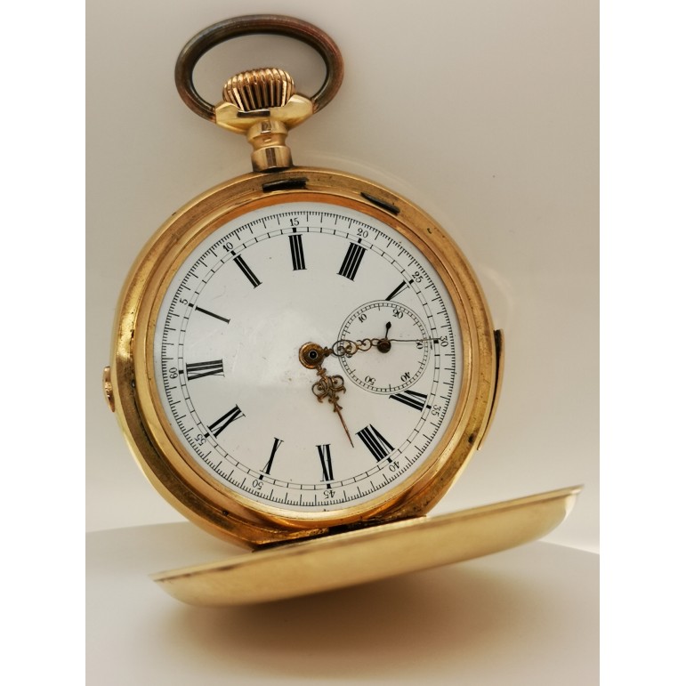 Savonet Repetition 14K guldklocka "Fickur" mekanisk urverk 56,5mm diameter utan krona från 1920-talet, pocket watch repetition.