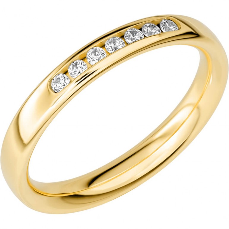 Ring i 18K Schalins SR2017 U18K Gultguld med 7 x 0,02 stenar på totalt 0.14ct Wesselton / SI. 1.9 mm höjd. Svenskt hantverk från Schalins.