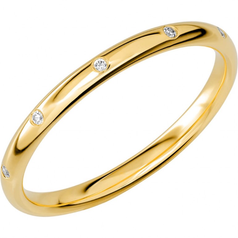 Ring i 18K Schalins SR2022 U18K Gultguld med 7 x 0,005 stenar på totalt 0.035ct Wesselton / SI. 1.5 mm höjd. Svenskt hantverk från Schalins.