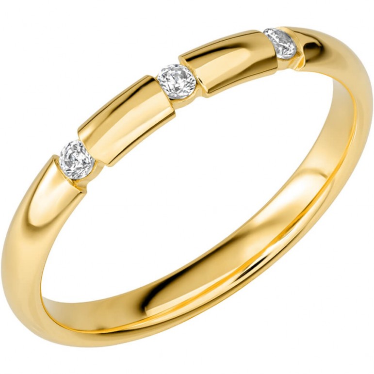 Ring i 18K Schalins SR2023 U18K Gultguld med 3 x 0,025 stenar på totalt 0.075ct Wesselton / SI. 1.5 mm höjd. Svenskt hantverk från Schalins.