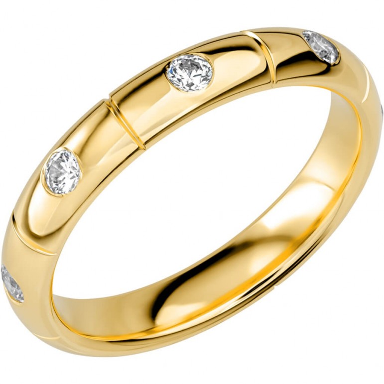 Ring i 18K Schalins SR2025 U18K Gultguld med 8 x 0,05 stenar på totalt 0.4ct Wesselton / VS. 1.9 mm höjd. Svenskt hantverk från Schalins.