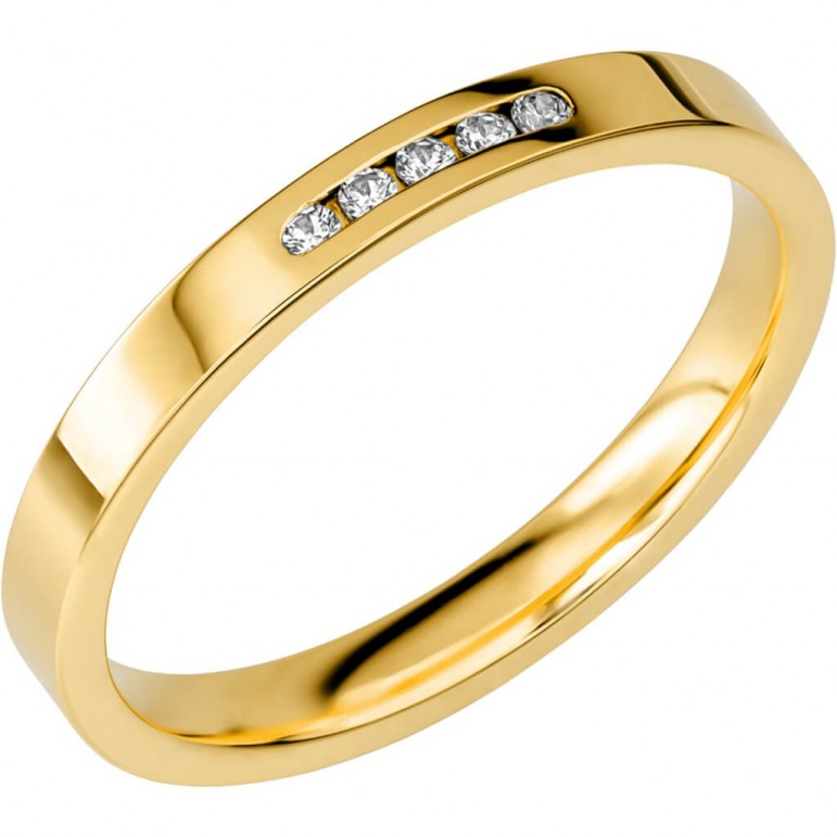Ring i 18K Schalins SR2037 U18K Gultguld med 5 x 0,01 stenar på totalt 0.05ct Wesselton / SI. 1.5 mm höjd. Svenskt hantverk från Schalins.