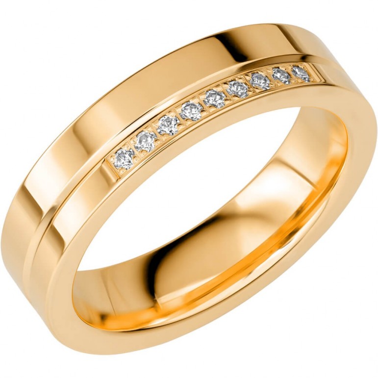 Ring i 18K Schalins SR2041 G18K Rödguld med 9 x 0,01 stenar på totalt 0.09ct Wesselton / SI. 2.1 mm höjd. Svenskt hantverk från Schalins.