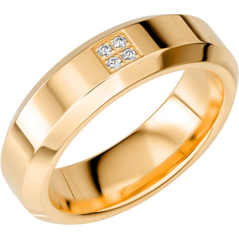 Ring i 18K Schalins SR2056 G18K Rödguld med 4 x 0,01 stenar på totalt 0.04ct Wesselton / SI. 2.4 mm höjd. Svenskt hantverk från Schalins.