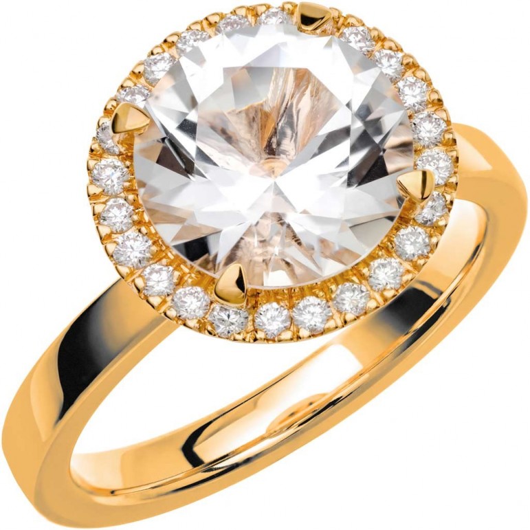 Ring i 18K Schalins Fairytale9v G18K Rödguld med Briljantslipad Snövit Beryll 9,5mm ca2,60ct + dia 24x0,01 stenar på totalt 0.24ct Wesselton / SI. 1.9 mm höjd. Svenskt hantverk från Schalins.