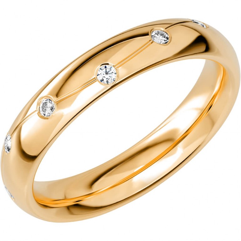 Ring i 18K Schalins SR2012 G18K Rödguld med 12 x 0,02 stenar på totalt 0.24ct Wesselton / SI. 2.1 mm höjd. Svenskt hantverk från Schalins.