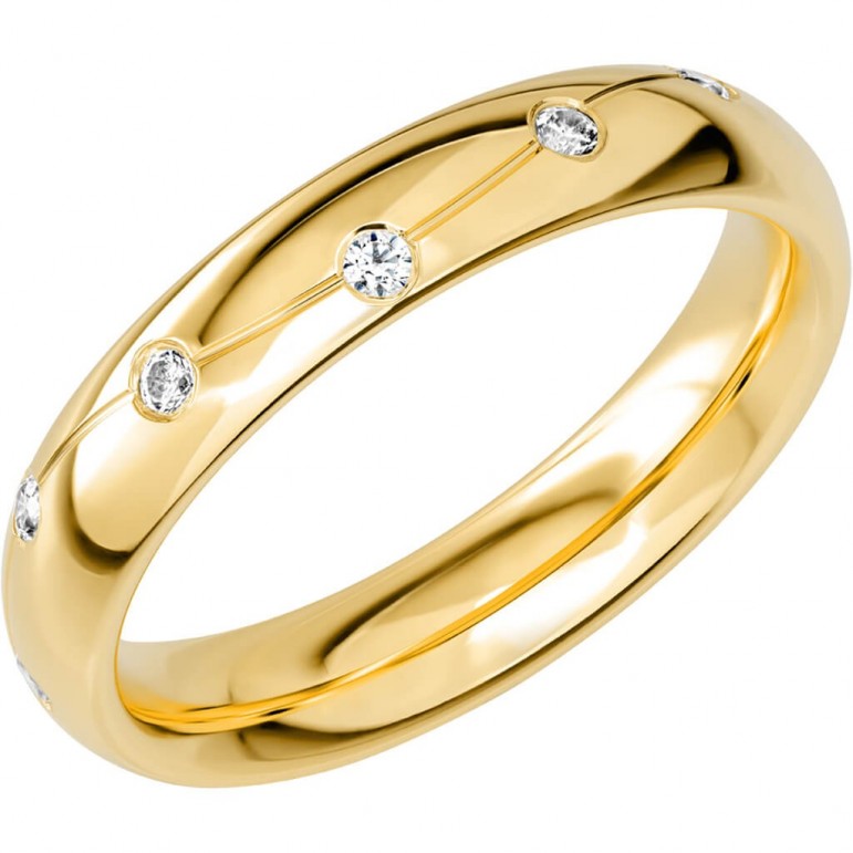 Ring i 18K Schalins SR2012 U18K Gultguld med 12 x 0,02 stenar på totalt 0.24ct Wesselton / SI. 2.1 mm höjd. Svenskt hantverk från Schalins.