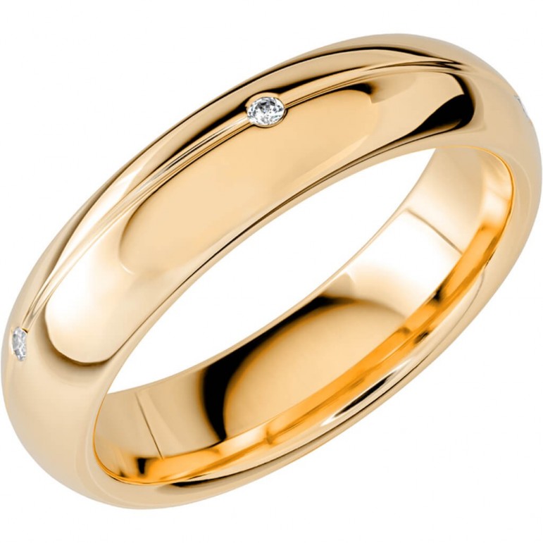 Ring i 18K Schalins SR2027 G18K Rödguld med 5 x 0,01 stenar på totalt 0.05ct Wesselton / SI. 2.1 mm höjd. Svenskt hantverk från Schalins.